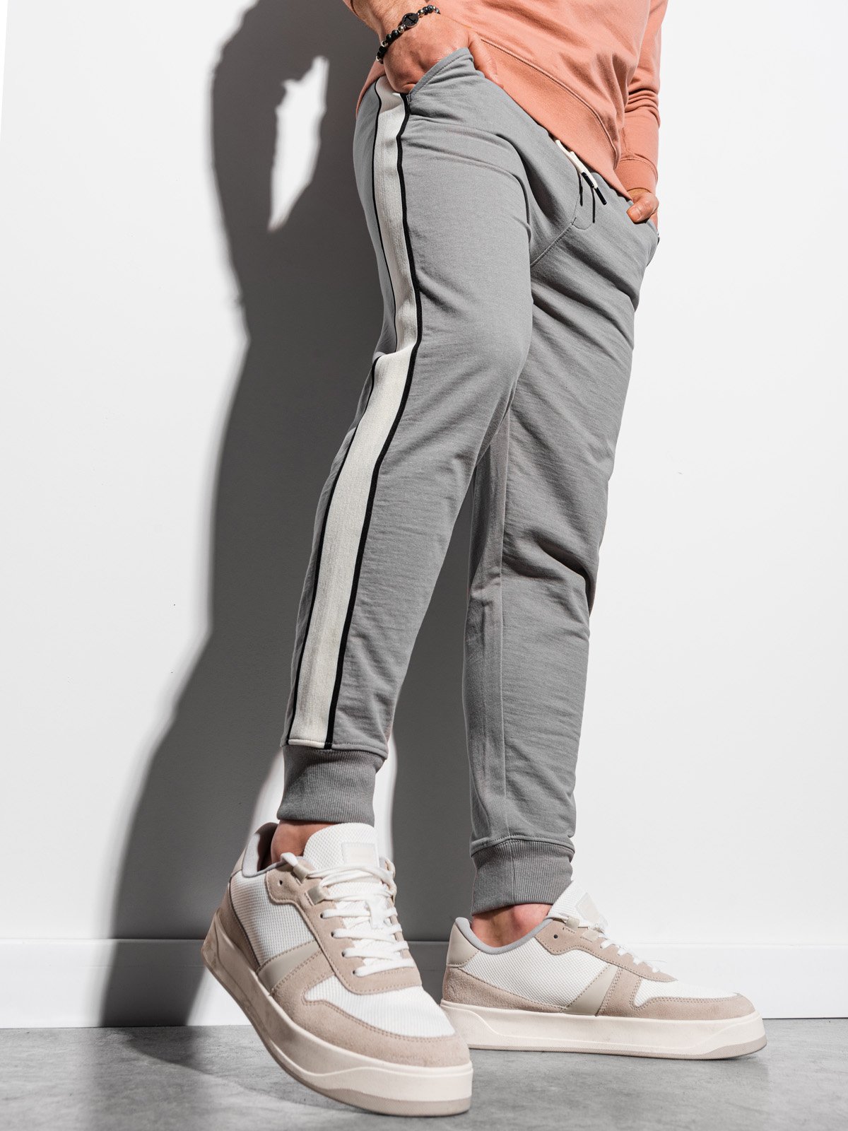 Мъжки спортен панталон с два странични джоба и декоративна лента отстрани. Модел произведен от световната марка Ombre от 80% памук и 20% полиестер.