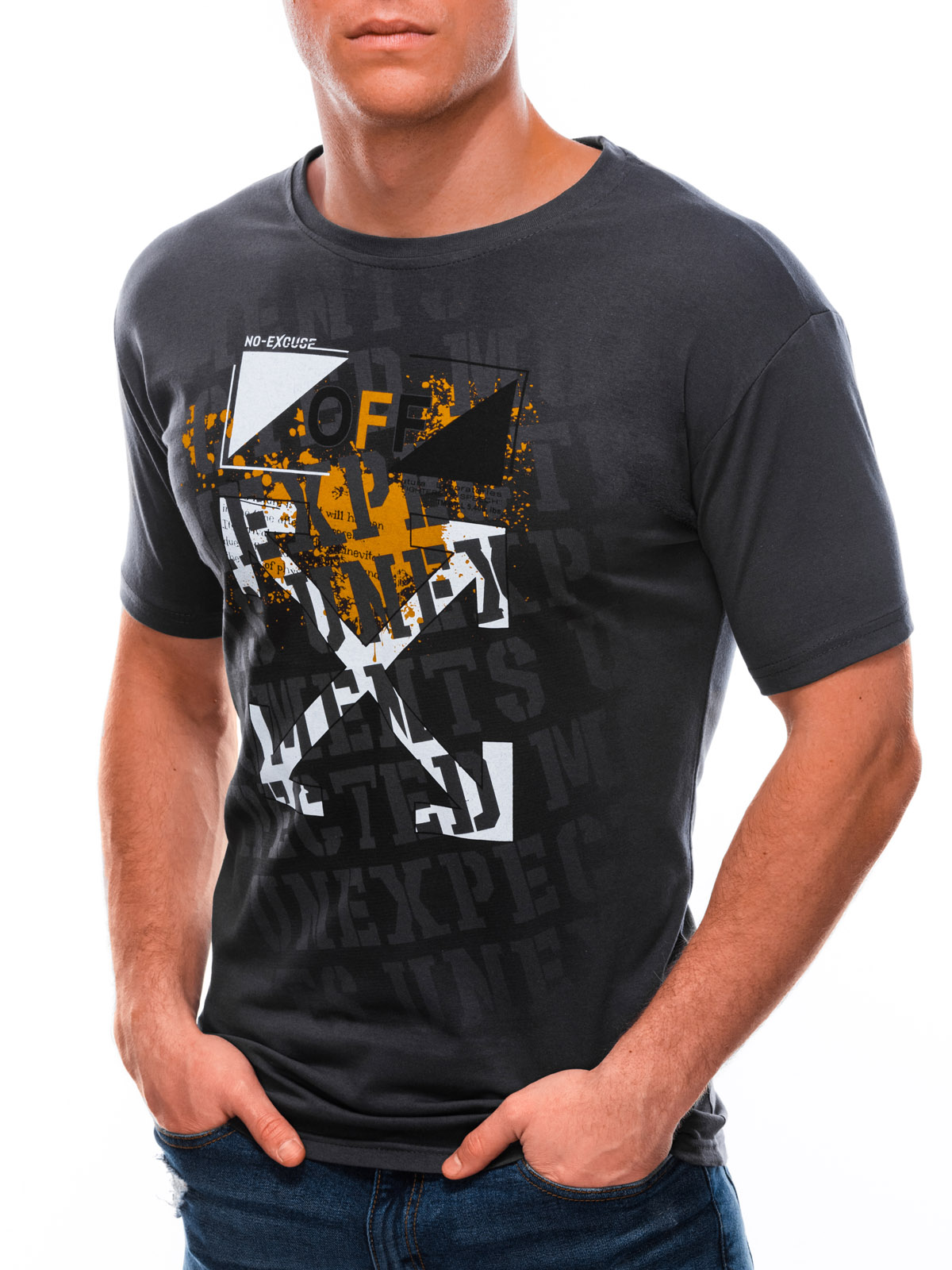 Мъжка тениска с интересни преливащи надписи на гърдите. Моделът е с кръгло деколте и по-дълги ръкави. Изработена от тънка материя от 100% памук.