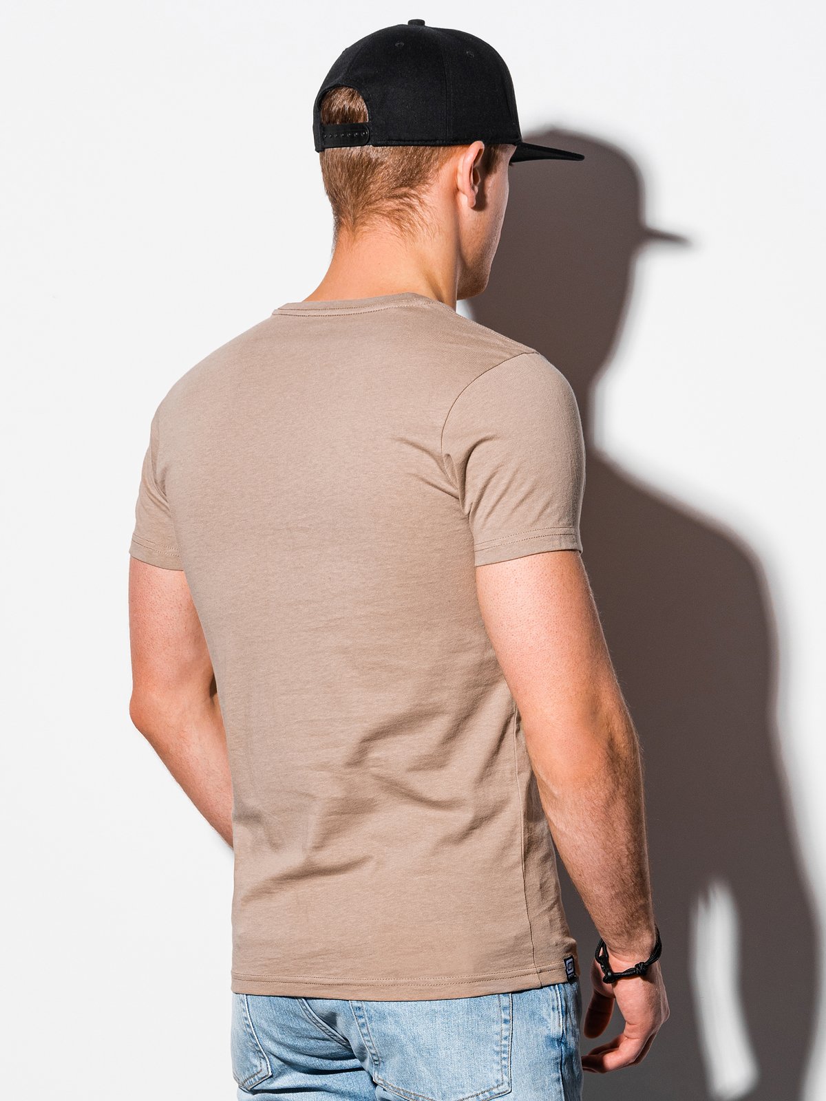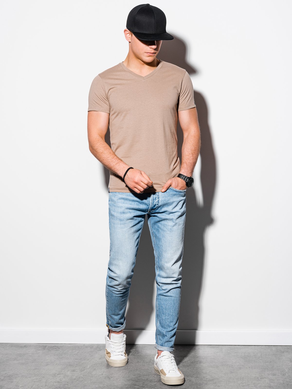 Мъжка тениска с V-образно деколте S1369 - светло кафява
