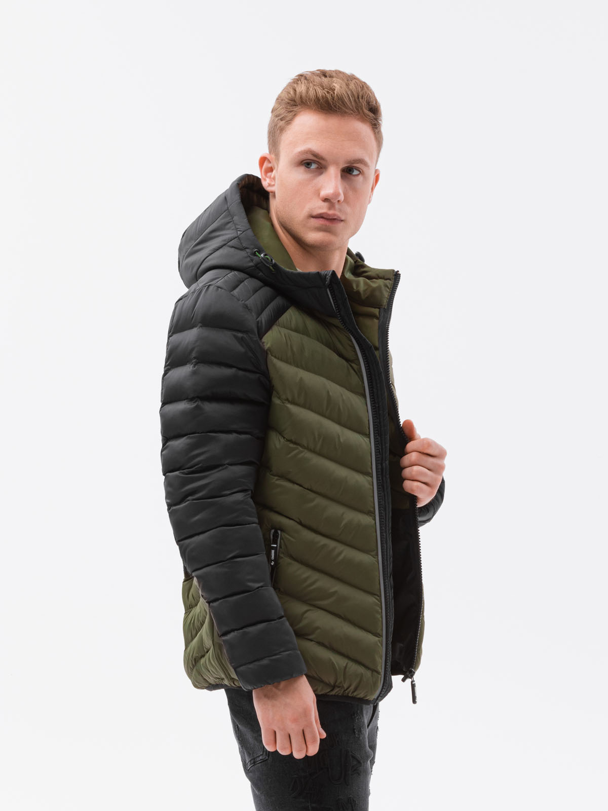 Мъжко яке от еко кожа OM-JAFL-0109 V1 - тъмно кафяво