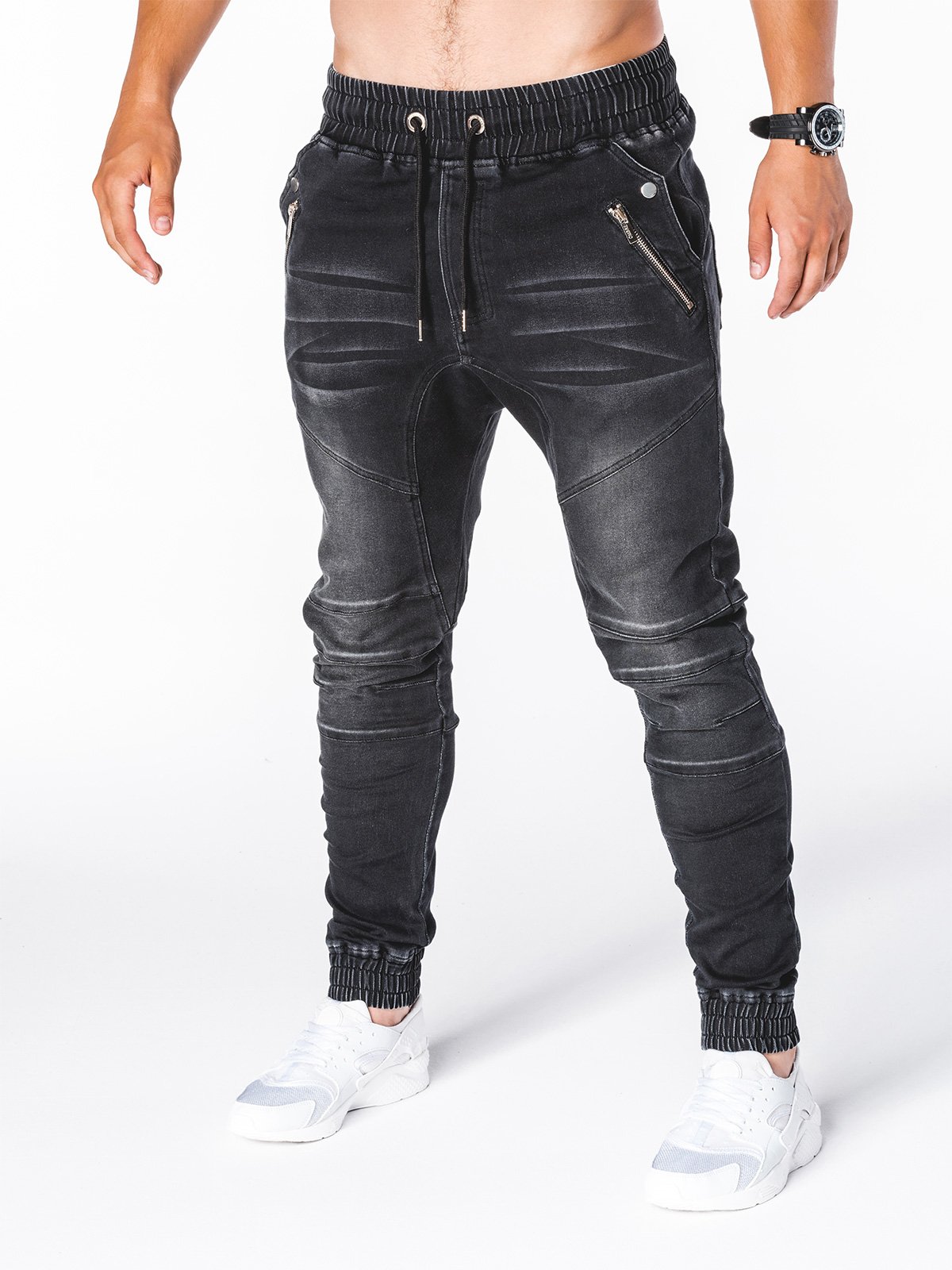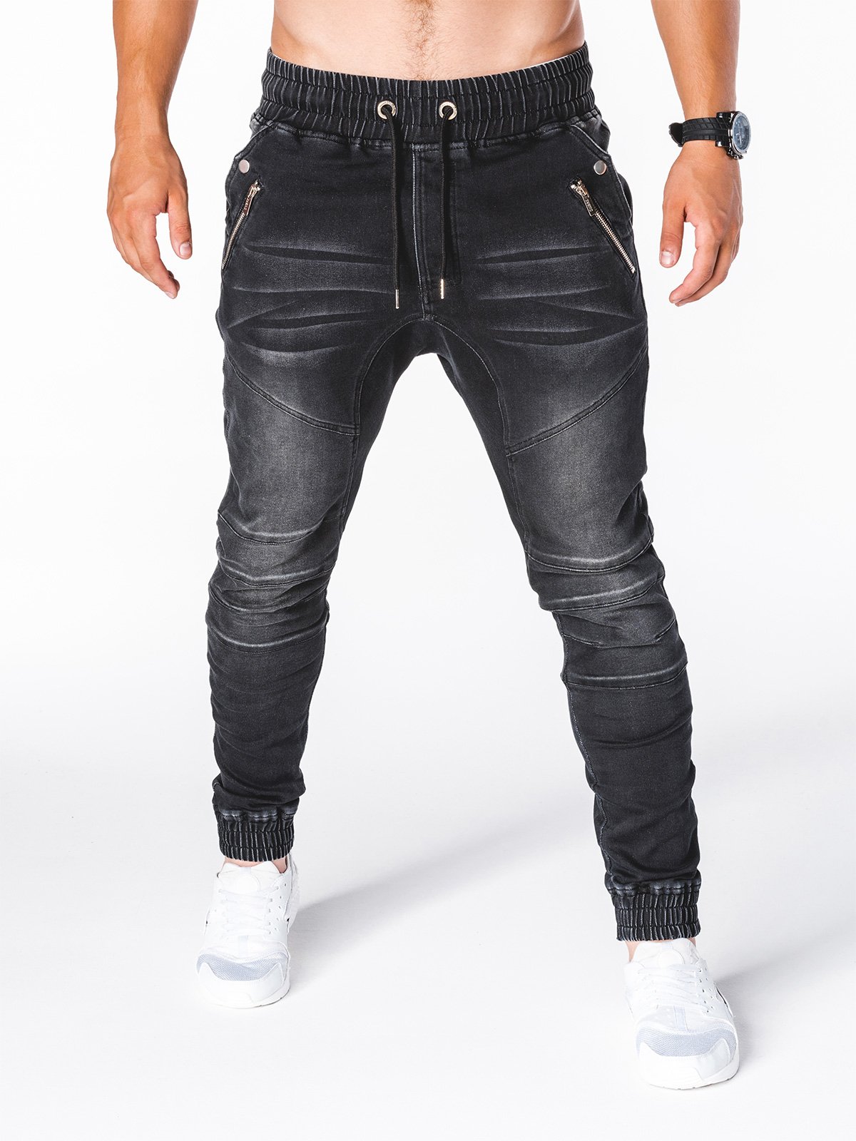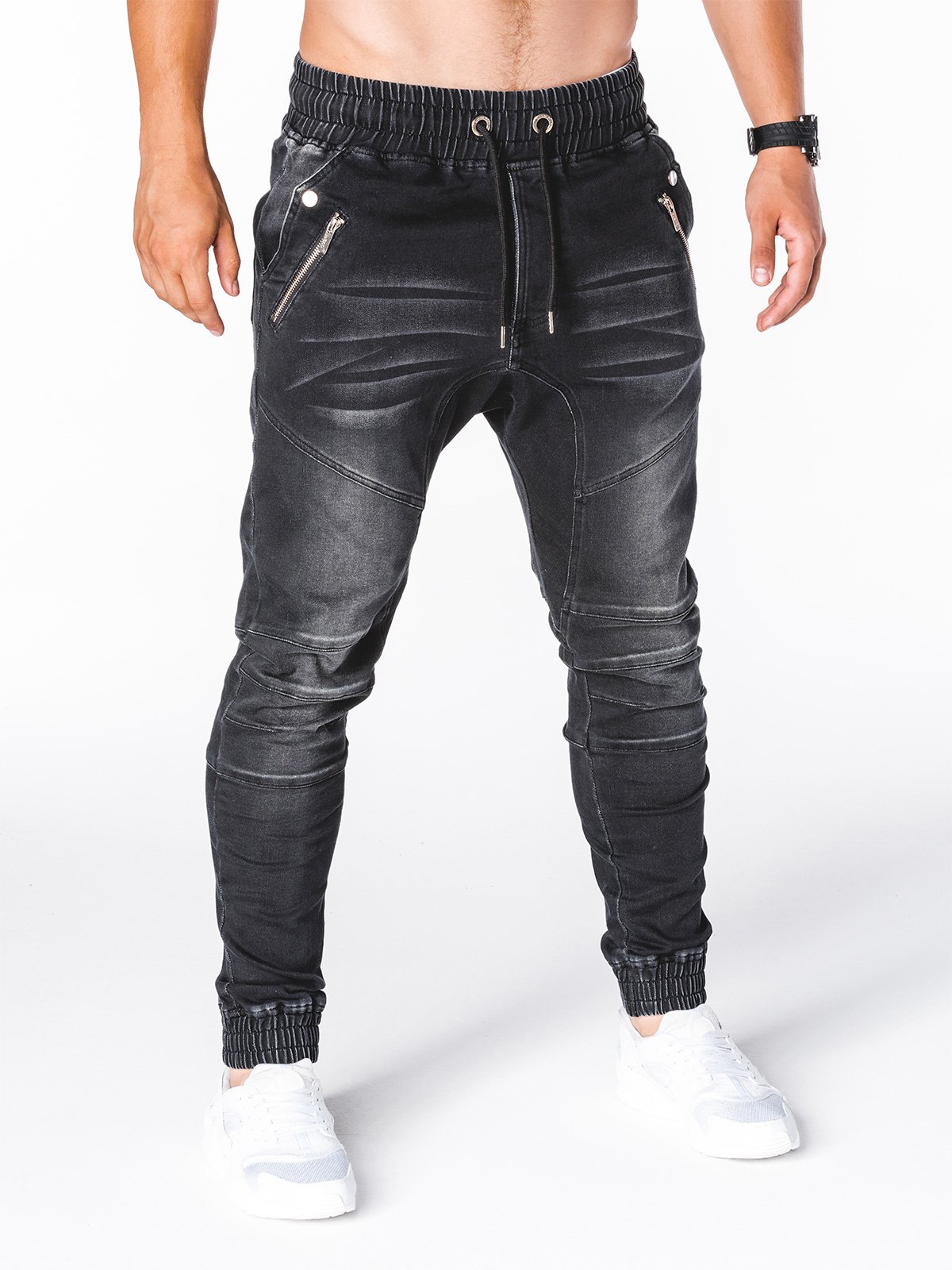 Мъжки дънки P404 в черен цвят произведени от 70% памук 28% полиестер 2% еластан