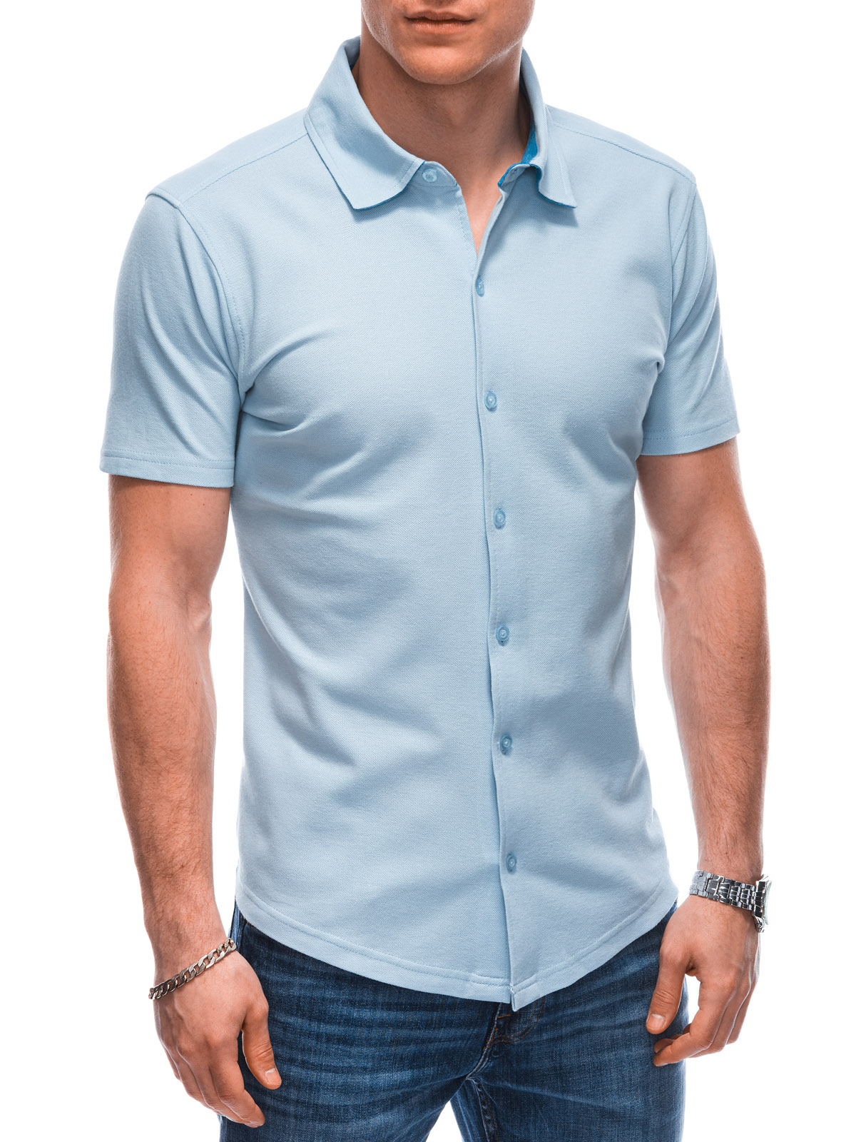 Мъжка слим фит риза с дълъг ръкав с лек акцент на копчетата. Произведена от 100% памук.