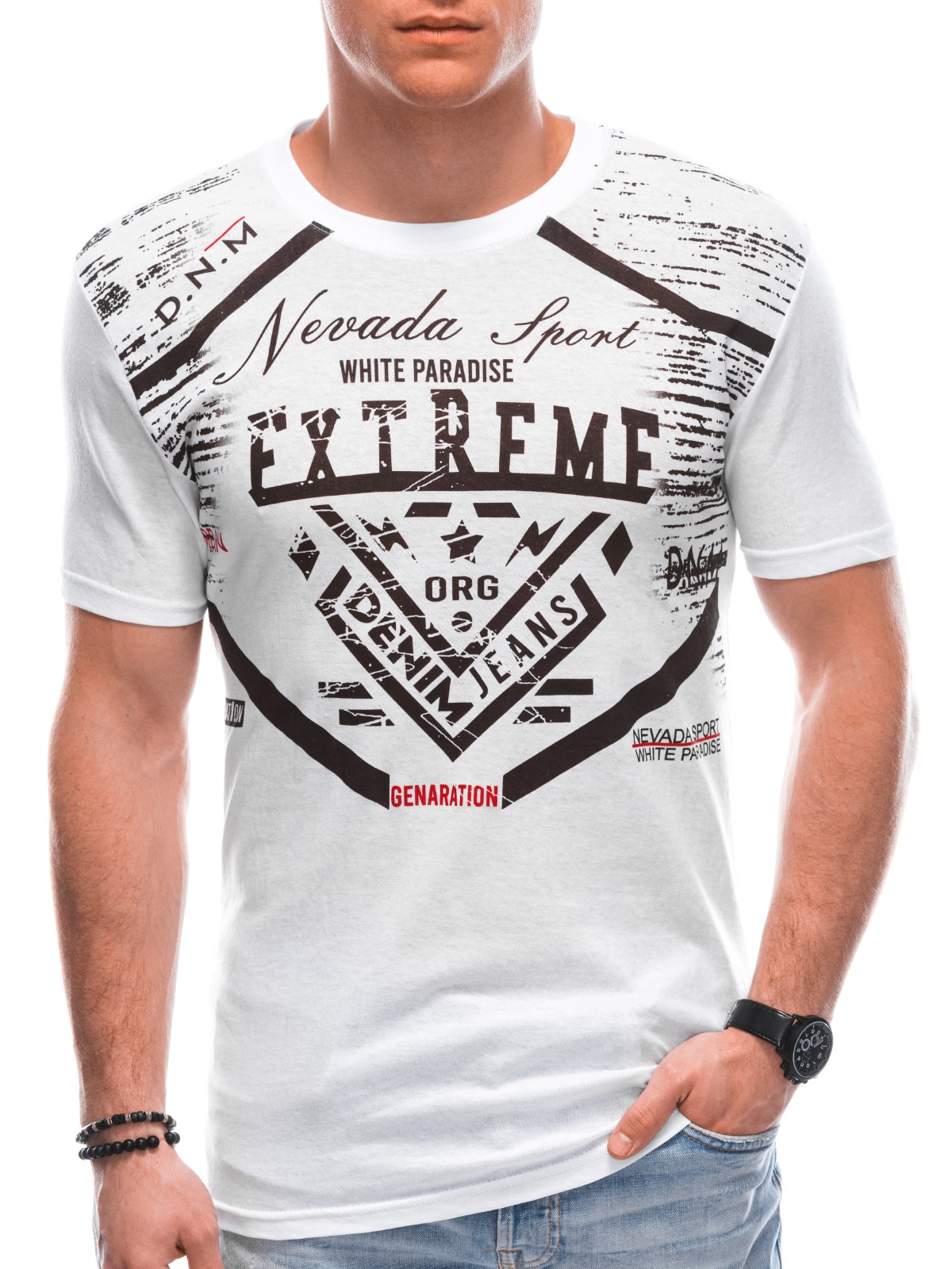 Мъжка бяла тениска със сини и зелени листа. Произведена от 100% памук.
