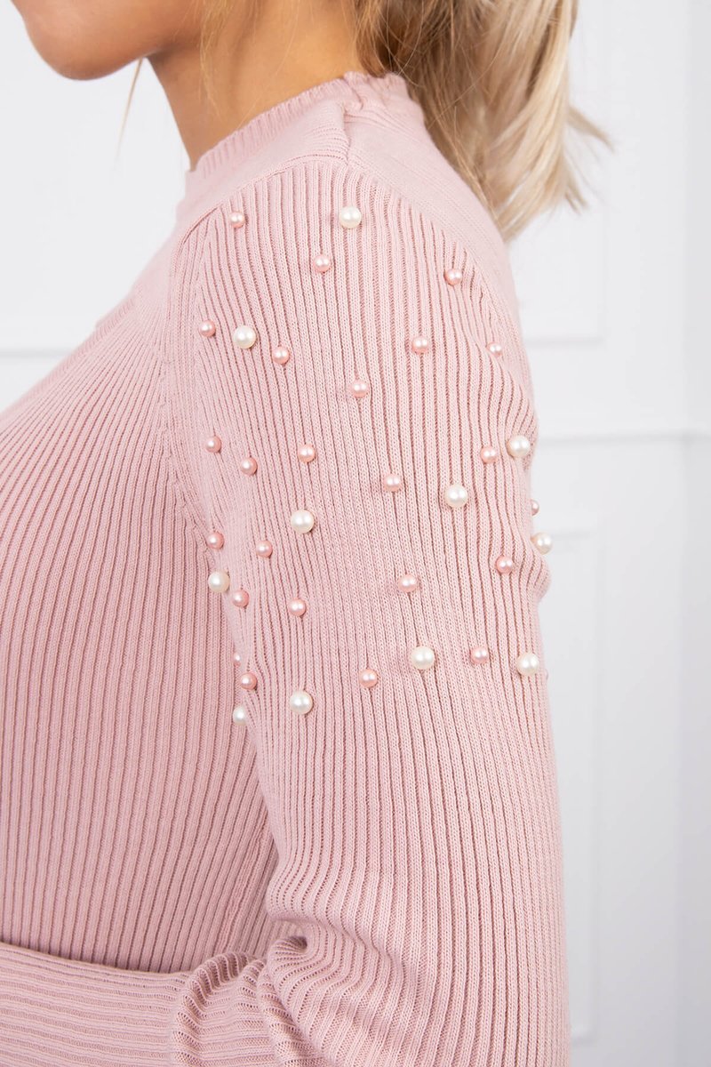 Дамска блуза с изрязано деколте и декоративни перли на раменете. Моделът е плетен и втален. Изработена от 100% полиестер блузата е подходяща за преходните сезони. Размерът е универсален и ще бъде подходящ за дами в размери S, M, L.