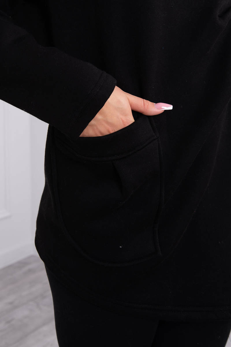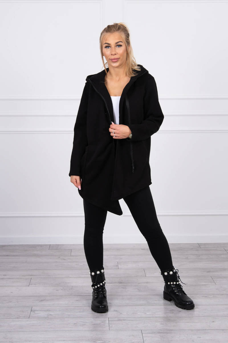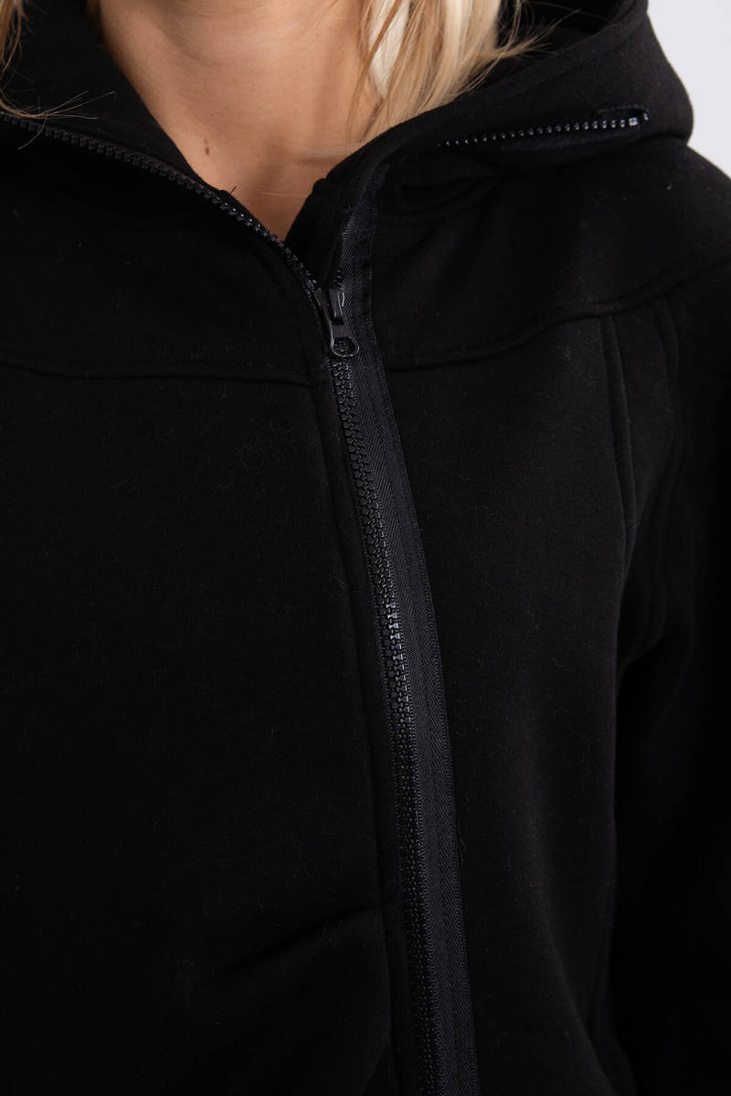 Дамски асиметричен ватиран суичър с качулка. Моделът е с един скрит вътрешен джоб и един външен. Произведен от 90% памук и 10% еластан. Размерът е универсален и ще бъде подходящ за дами, носещи размери S, M или L.