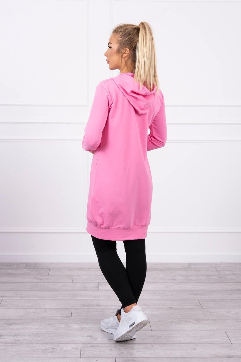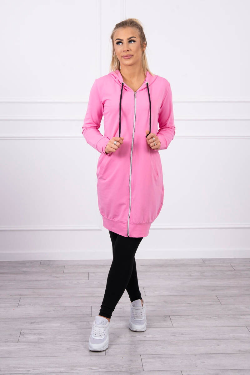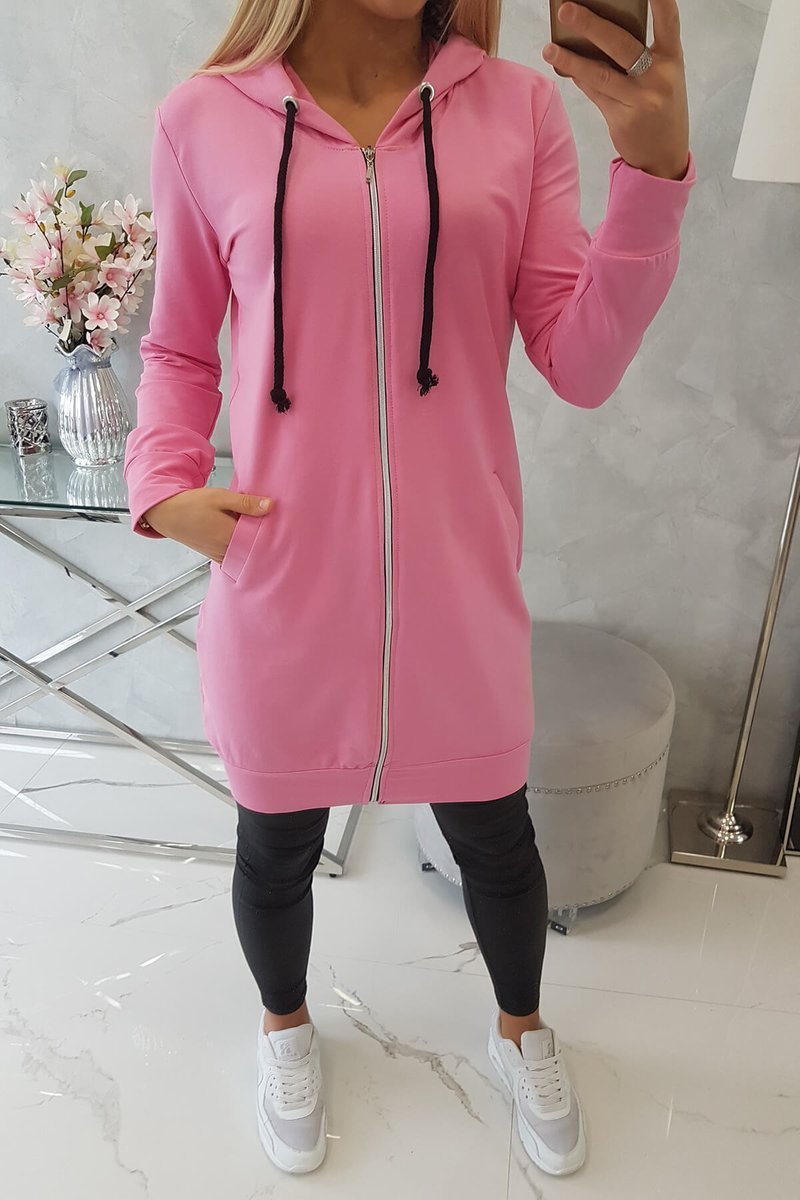 Удобен дамски удължен суичър с качулка. Модел подходящ за преходните сезони. Произведен от 90% памук и 10% еластан. Размерът е универсален и ще бъде подходящ за дами, носещи размери S, M или L.